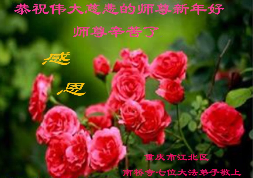 在新年来临之际,我们恭祝师尊新年快乐!感谢师尊的慈悲苦度。弟子会继续努力学好大法,抓紧时间实修,放下各种执着心,走师尊安排的路。 重庆市江北区南桥寺七位大法弟子恭祝师尊新年好!
