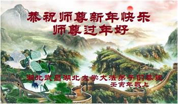 李大师您好,您辛苦了,谢谢李大师!法轮大法好,真善忍好。北京昌平一明真相的世人敬上。 湖北省荆州市洪湖市大法弟子全家恭祝师尊新年快乐!