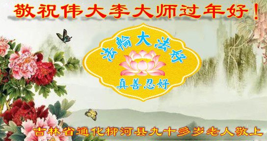 大法师父您好!您辛苦了!在此新年之际,我们全家感恩大法师父给我们全家带来了真福和欢乐!我们家只有一个独生女儿,从小就有精神病,每年都要住院几个月,我们做父母的被她搞的抬不起头,还不敢向外讲,怕孩子长大找不到婆家,四处求医不灵,后来孩子结婚三、四年了也没怀孕,女儿的精神病加重。就是在去年初,我家有一个亲戚是炼法轮功的知道了这件事,她要我试一下念:“法轮大法好,真善忍好”九字吉言,要我们全家人都诚心念:法轮大法好,真善忍好!九字吉言,还给我们真相优盘看,就从那起,我女儿一天比一天好了,直到现在也没发过病,而且还怀了孕,女儿高兴极了,病也没了。这是我们全家做梦都没想到的。 我们全家都感恩不尽最尊敬李大师! 借此新年之际,我们全家衷心的祝愿慈悲伟大的大法师父新年快乐!感恩慈悲伟大的大法师父救了我们的女儿,也救了我们的全家。更希望这场对法轮功的无辜迫害早日结束。盼望大法师父早日回国。 我们将永远记住:法轮大法好,真善忍好!恭祝慈悲伟大的大法师父新年快乐! 洪湖市明白真相世人全家敬上 2022年1月 吉林省通化柳河县一位九十七岁老人恭祝李大师过年好!