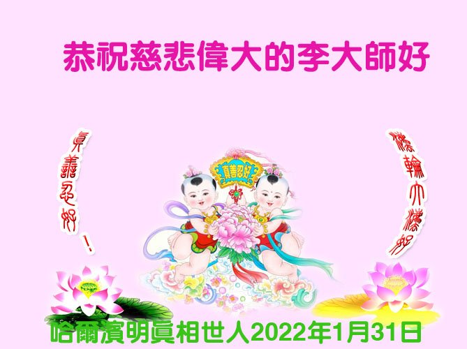 恭祝李大师新年快乐! 诚信法轮大法,支持大法弟子。 感谢李大师救度之恩!赐给我家和睦和幸褔! 四川省会理市一家三位明白真相的民众恭祝 2022年1月31日 天津大法弟子恭祝慈悲伟大的师尊新年快乐!