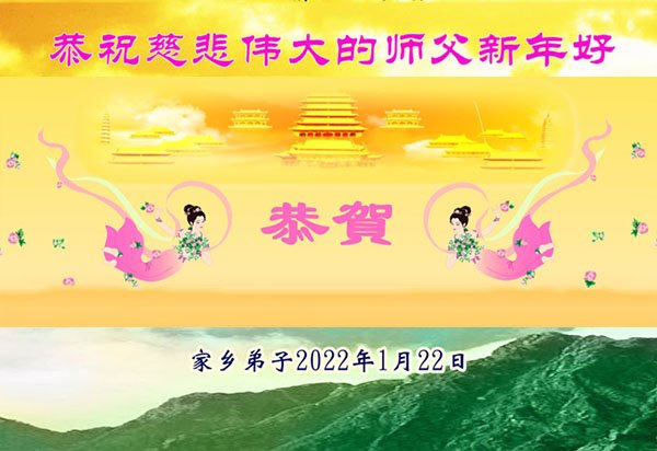 普天同庆贺佳节,亿万法徒叩佛恩。 四海一心讲真相,众生得度齐欢笑。 大陆大法弟子叩拜 二零二二年元月二十六日 中国大陆一老年大法弟子恭祝伟大的师尊过年好!