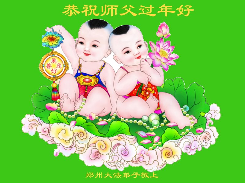 神佛慈悲把人救 法轮旋转驱邪恶 天网将收、圣景千秋 普天同庆、法正人间 神佛大显遍神州 河南郑州一学法小组大法弟子恭祝师尊新年好!