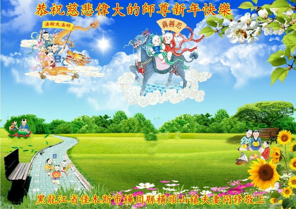 感恩师尊对弟子们无微不至的保护,弟子们一定紧尊师命,做好三件事,对得起大法弟子的称号,救度更多世人。 黑龙江省大法弟子恭祝师父过年好!