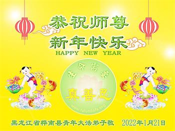 黑龙江省佳木斯市桦南县青年大法弟子恭祝师尊新年快乐!