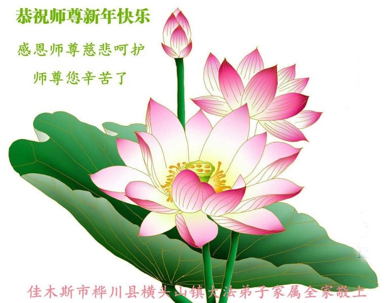弟子万分感恩师尊的慈悲救度,师尊您辛苦了。弟子无法用语言表达感恩师尊的心,在新的一年里,弟子唯有实修自己,勇猛精進,做好三件事,完成使命,跟随师尊回家。 弟子叩谢恩师! 黑龙江省佳木斯市桦川县横头山镇大法弟子家属全家恭祝师尊新年快乐!