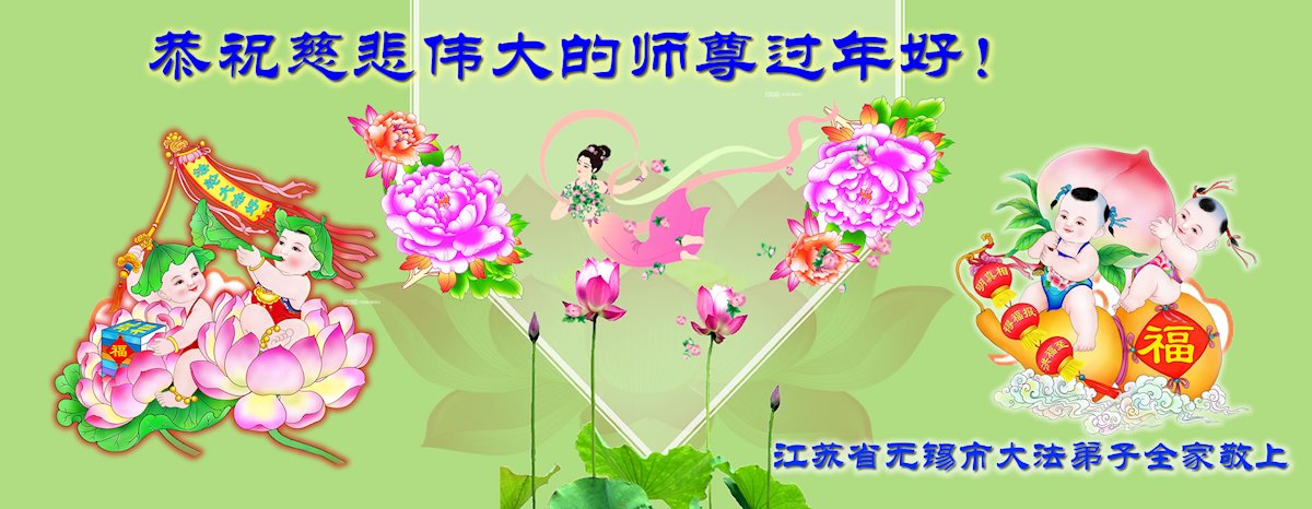 心中常念吾师尊,拜年只为表心声。遵师教诲不停步,实修精進方为真! 江苏南京市一大法弟子携全家恭祝师尊过年好!