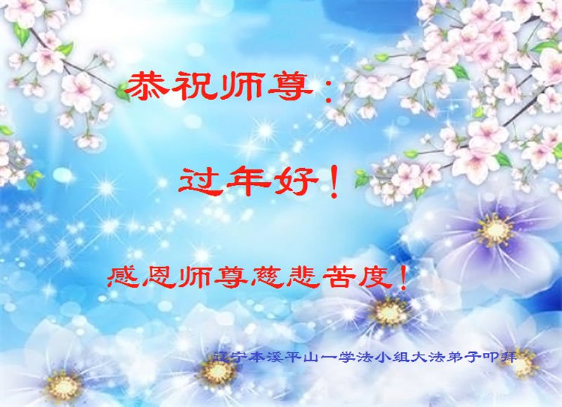 师尊您辛苦了!永远感谢师尊的慈悲救度之恩!师恩无以回报,我们一定会更加努力做好,不辜负师尊的慈悲救度,不辜负众生对大法弟子的期盼。做好三件事。 辽宁本溪平山一学法小组大法弟子恭祝师尊过年好!