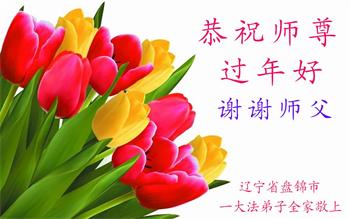 辽宁省盘锦市一大法弟子代表公公、婆婆、母亲及三位姐姐共七位大法弟子及不修炼但受大法恩泽的家人共同祝愿慈悲伟大的师尊过年好!