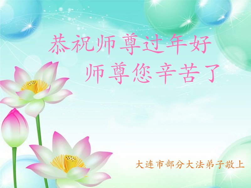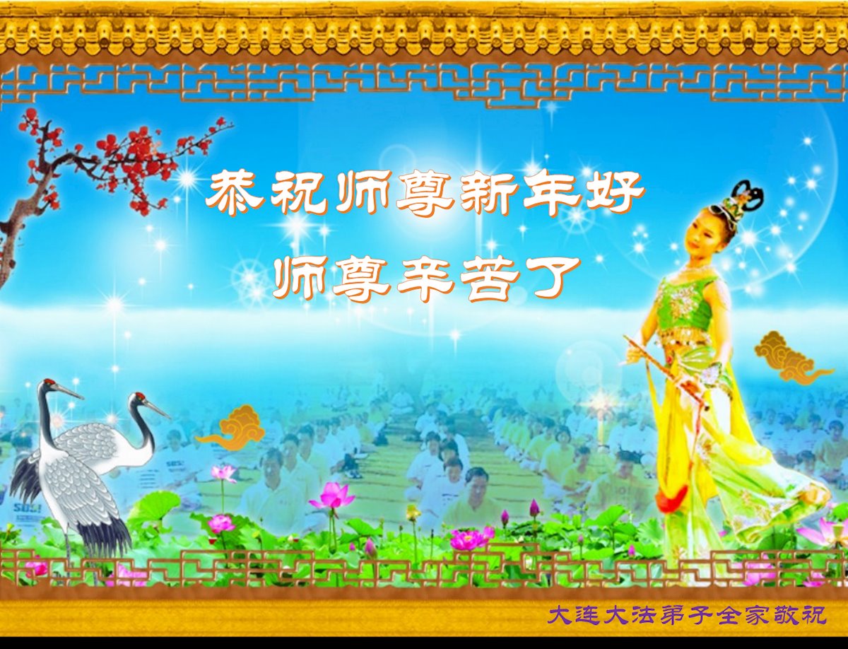 恭祝慈悲伟大的师父新春快乐! 大连大法弟子叩谢师尊! 辽宁省盘锦市一大法弟子全家恭祝师尊过年好!