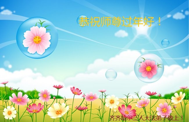 家乡弟子恭祝慈悲伟大的师父过年好! 大陆大法弟子一家三代恭祝师尊新年快乐!