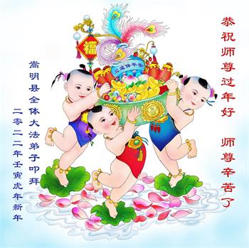 恭祝慈悲伟大的师尊新年好! 云南省嵩明县全体大法弟子恭祝慈悲伟大的师尊过年好!