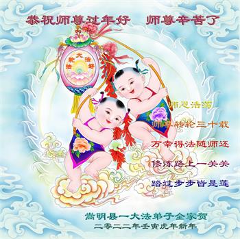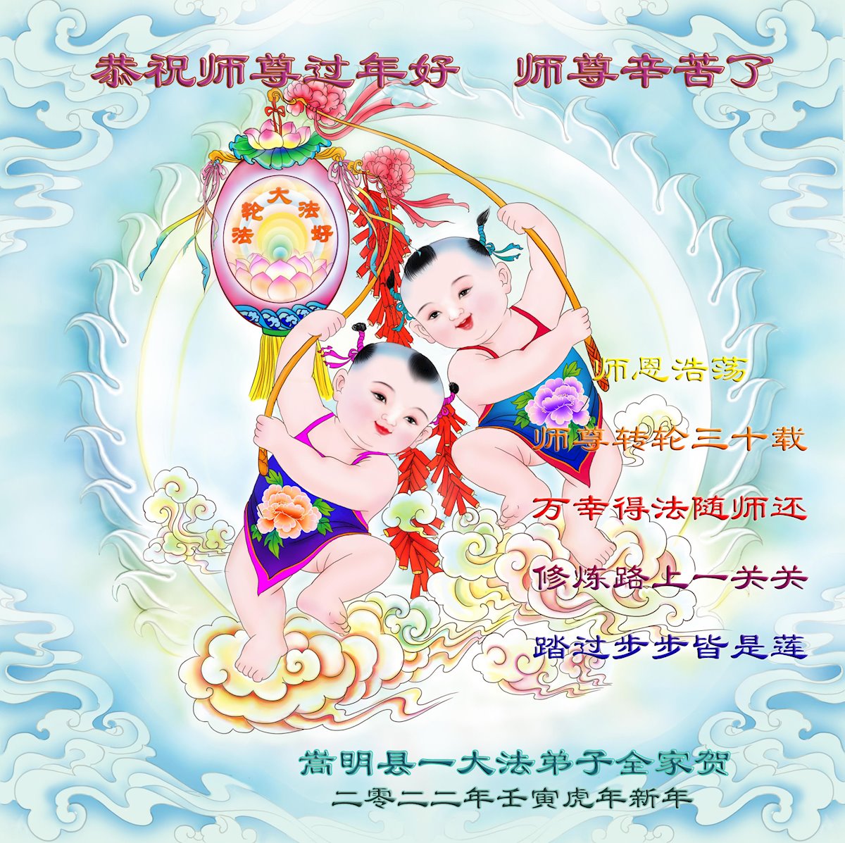 2022新春嵩明全体大法弟子恭贺 云南省嵩明县一大法弟子全家恭祝慈悲伟大的师尊过年好!
