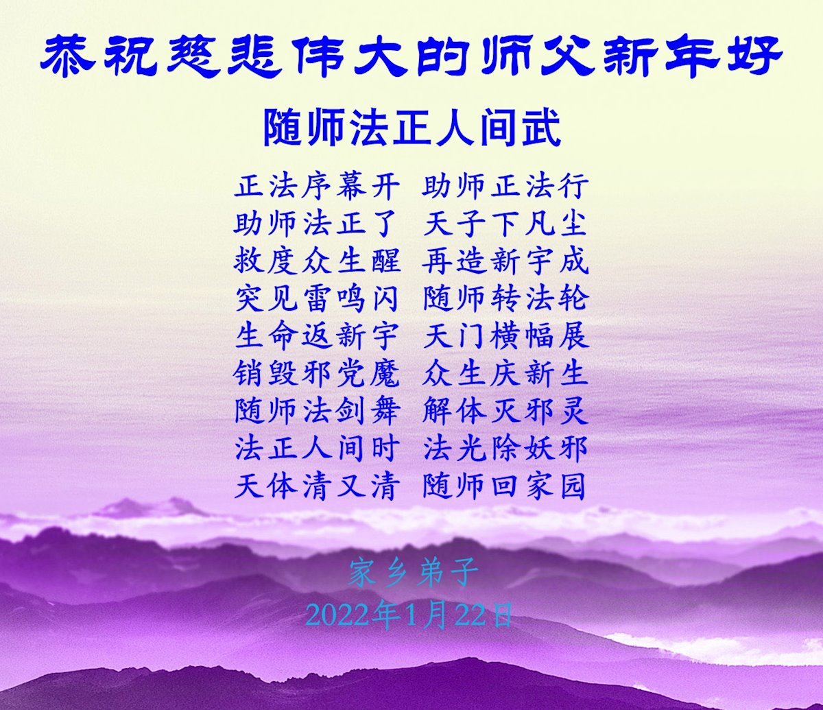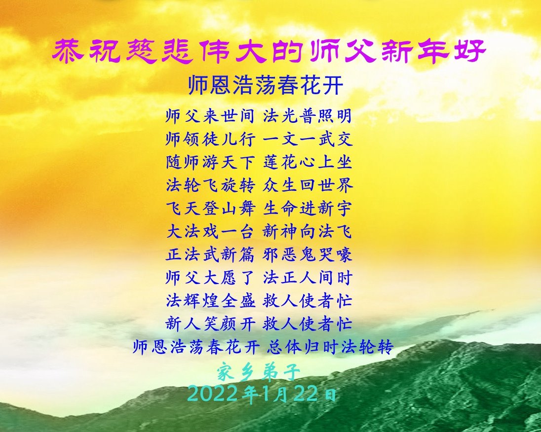 【明慧网二零二二年二月三日】 大陆大法弟子九十人双手合十恭祝慈悲伟大的师尊新年快乐!