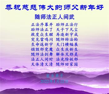 中国大陆两名大法弟子恭祝慈悲伟大的师尊新年快乐!