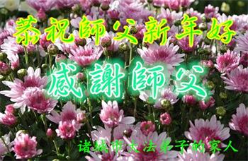 师父新年好!在这二十几年的邪恶环境中,师父不但时时看护着弟子,还保护着大法弟子的家人,化解了很多磨难。 我们全家人诚心感恩师父的慈悲救度!跪拜师父! 山东省潍坊市诸城市大法弟子的家人恭祝师父过年好!