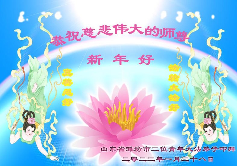 【明慧网二零二二年二月三日】 山东省青岛市城阳大法弟子及家人恭祝师尊过年好!