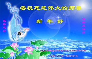 恭祝慈悲伟大的师尊新年快乐!师父好!师父您辛苦了!无比感激师尊的慈悲苦度!弟子要做好三件事、多救人。 山东省部份法轮大法弟子恭祝师尊新年好!