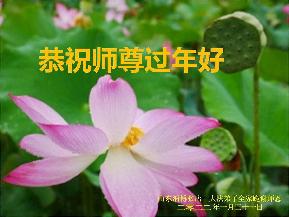 师尊辛苦了,2022年1月13日中午,丈夫同修晕倒在地,接近2个小时起不来,到晚上8点还吐,但是,当天就全好了。是慈悲的您救了丈夫同修的命。我们夫妻二人跪拜慈悲的师尊救命之恩,找出不足,精進实修,多救人,兑现史前大愿,圆满随师还。 恭祝慈悲伟大的师尊过年好! 中国大陆山东省德州市陵城区全体大法弟子恭祝伟大的师尊过年好!