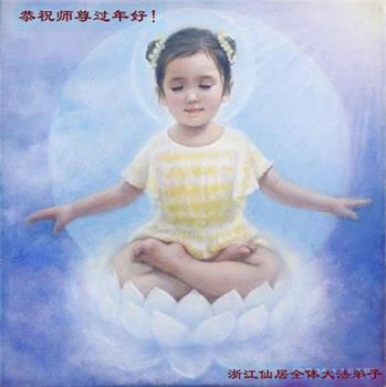 江省丽水市全体大法弟子共同敬祝伟大的师尊新年快乐! 浙江一百岁老年大法弟子及女儿同修恭祝师尊新年快乐!