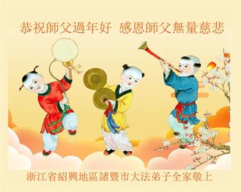 传统的新年又要到了,我们学法小组全体学员恭祝伟大师尊新年快乐!感恩师尊的慈悲苦度!并表示在新的一年里,学好法,多学法,不断同化大法,不断向内找,多去人心的执着,不断升华自己的心性境界与层次,多救人,完成好自己的誓约。 浙江金华市一学法小组大法弟子敬上 浙江省绍兴地区诸暨市大法弟子全家恭祝师父过年好!