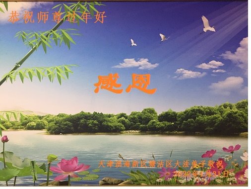 感谢师尊的慈悲救度与一路保护!新的一年中,弟子们将更加精進,做好师父让做的三件事。同时代大法弟子家属向师尊表达由衷的感谢和尊敬!感谢大法师父给大法弟子家庭带来的幸福,感谢佛恩浩荡! 天津滨海新区塘沽区大法弟子恭祝师尊过年好!