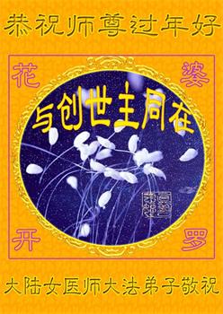 感恩师尊的救度之恩。弟子一定听您的话,做好大法弟子该做的三件事,学好法,修好自己多救人。 大陆女医师大法弟子恭祝至尊的师父过年好!