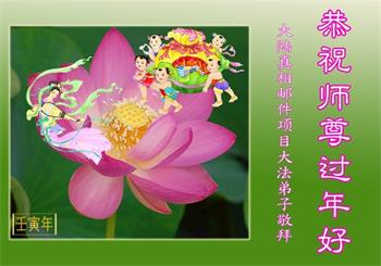 感恩师父救度之恩,千言万语也表达不了弟子感恩的心。唯有精進、再精進。弟子代表全家跪拜! 中国大陆真相邮件项目大法弟子恭祝慈悲伟大的师尊过年好!