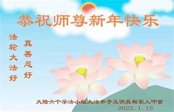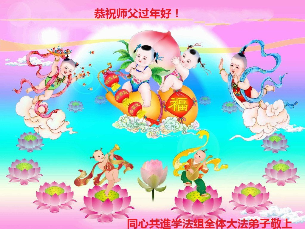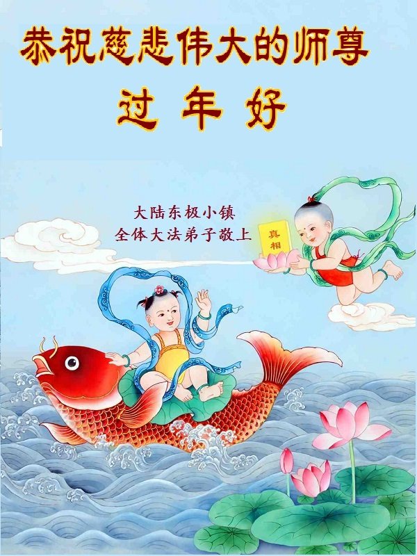 恭祝慈悲伟大的师尊过年好! 大陆东极小镇全体大法弟子敬上 大陆六个学法小组大法弟子及明真相家人恭祝师尊新年快乐!