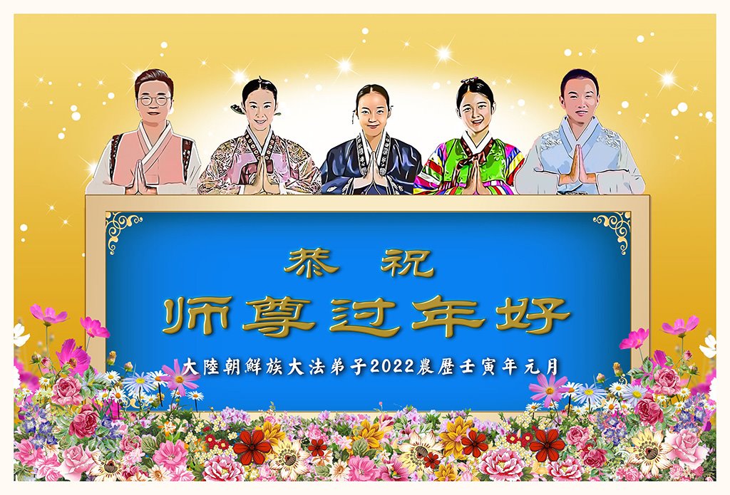 恭祝慈悲伟大的师尊新年快乐!弟子感恩师尊的慈悲救度,弟子跪拜师尊!恭祝师尊新年好! 大陆全体朝鲜族大法弟子恭祝师尊新年快乐!