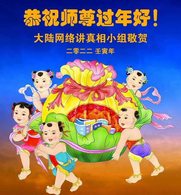 感恩师尊在过去的一年里加持弟子们共同精進。弟子们不懈怠,比学比修找差距,整体提高救度众生,逐渐的向无私无我、先他后我的新宇宙生命标准同化。在新的一年里,弟子们将以大法弟子的最佳状态兑现誓约、完成使命、不负师尊的期望与众生的期盼! 迎新年 感恩 凤凰展翅舞九天 法徒救人谱新篇 苍穹归正恒久远 普天同庆颂师恩 大陆网络讲真相小组大法弟子恭祝师尊过年好!