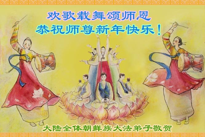 欢歌载舞颂师恩!大陆全体朝鲜族大法弟子恭祝师尊新年快乐! 大陆大法弟子恭祝师尊过年快乐!