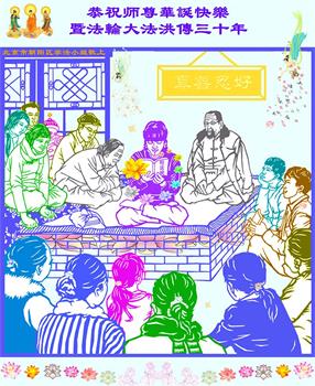 北京方庄学法小组大法弟子恭祝师尊生日快乐!庆贺法轮大法洪传三十周年!