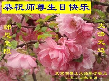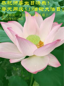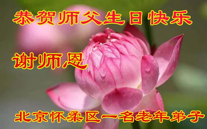师尊您好!三十年来,您为弟子操尽了心,一步一步牵着我们的手走到今天。您辛苦了!今后我们要继续兑现自己的誓约,找自己、去执着、修好自己,多救人,跟随您回家! 北京市石景山区一大法弟子恭贺法轮大法日!恭祝慈悲的师尊生日快乐!