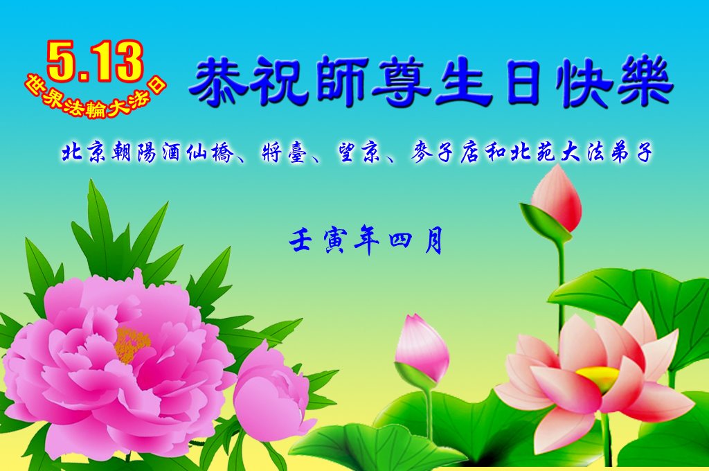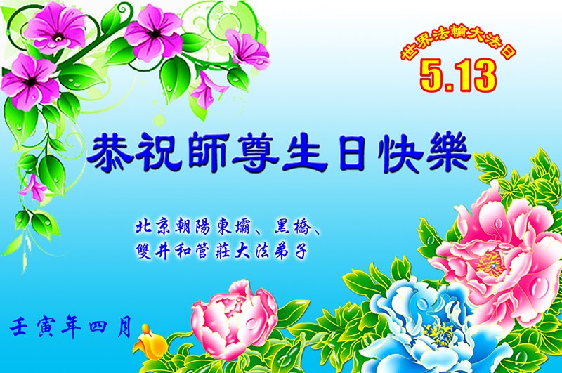 北京朝阳东坝地区、黑桥地区、双井地区和管庄地区大法弟子恭祝师尊生日快乐!庆贺世界法轮大法日!