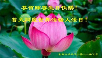 值此世界法轮大法日到来之际,恭祝师尊生日快乐!并向师尊叩拜!大法弟子非常想念师尊,衷心感谢慈悲伟大的师尊!并按师尊的教诲,走好最后的路。 弟子合十 北京大法弟子恭祝师尊生日快乐!普天同庆世界法轮大法日!