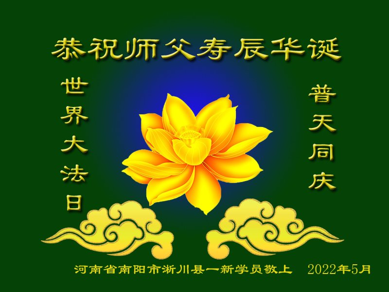 河南省南阳市淅川县一新学员恭祝慈悲伟大的师尊生日快乐!恭贺世界法轮大法日!