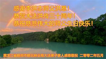 感恩师父的救度之恩!未修炼的对像恭祝李大师生日快乐!感谢李大师保护我们平安度过疫劫,我们要牢记法轮大法好,真善忍好! 黑龙江省鹤岗市鹤北林业局大法弟子家人恭祝李大师生日快乐!庆祝法轮大法洪传世界三十周年!