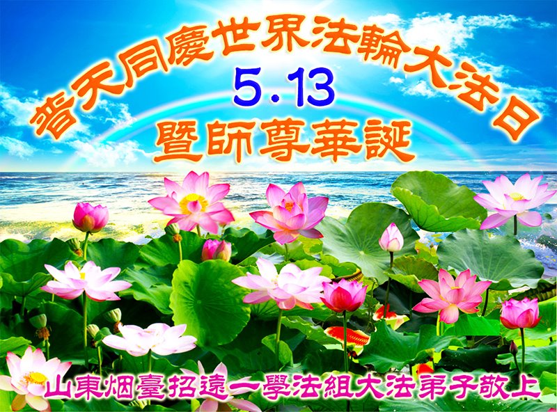 敬师感恩五一三 弟子叩拜已在先 法中修炼二十载 脱胎换骨转观念 学法救人责任当 吃苦为乐心里甜 只愿众生能得救 惟愿师尊展笑颜 山东省烟台市龙口市一大法弟子敬贺法轮大法日!
