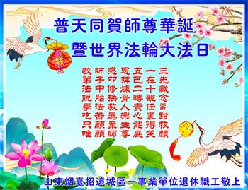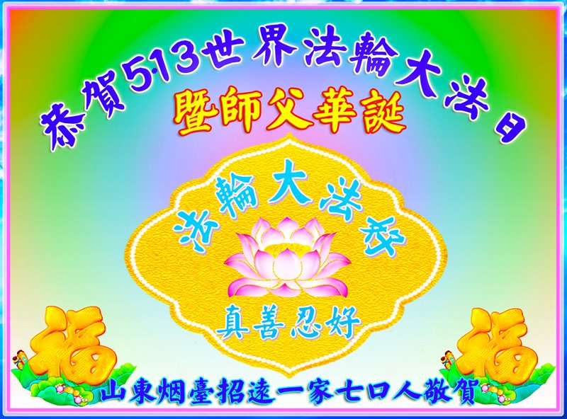 恭祝师父生日快乐!希望“法轮大法”、“真、善、忍”世世代代流传下去。 山东省烟台市龙口市一大法弟子家人敬贺 山东淄博一老年大法弟子及家人恭祝师尊生日快乐!恭贺世界法轮大法日!