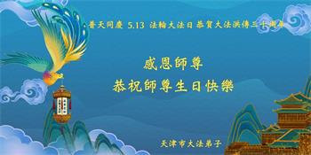 天津市大法弟子恭祝师父生日快乐!普天同庆世界法轮大法日!