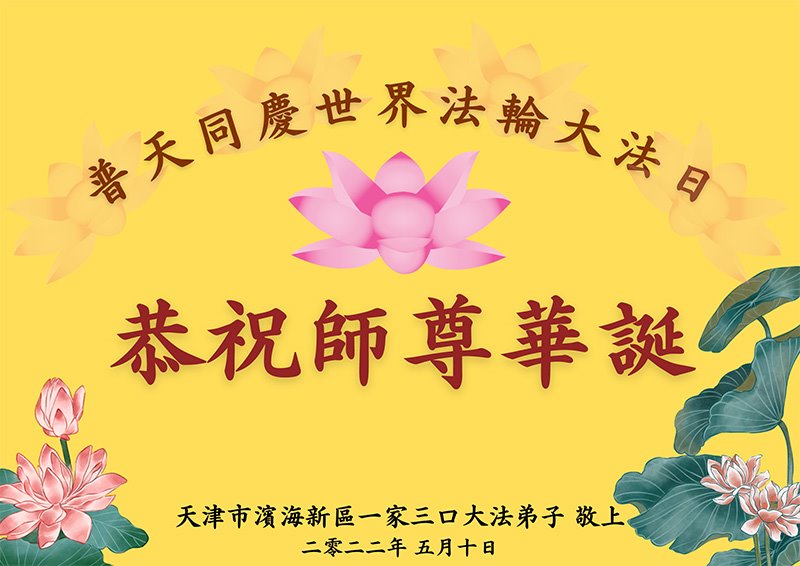 【明慧网二零二二年五月十二日】 天津市河东区一大法弟子全家恭祝师尊生日快乐!普天同庆法轮大法日!