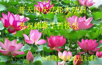 感恩师父一路慈悲看护,弟子一定不辜负师父的期望。 天津市河东区大法弟子恭祝师父生日快乐!普天同庆世界法轮大法日!