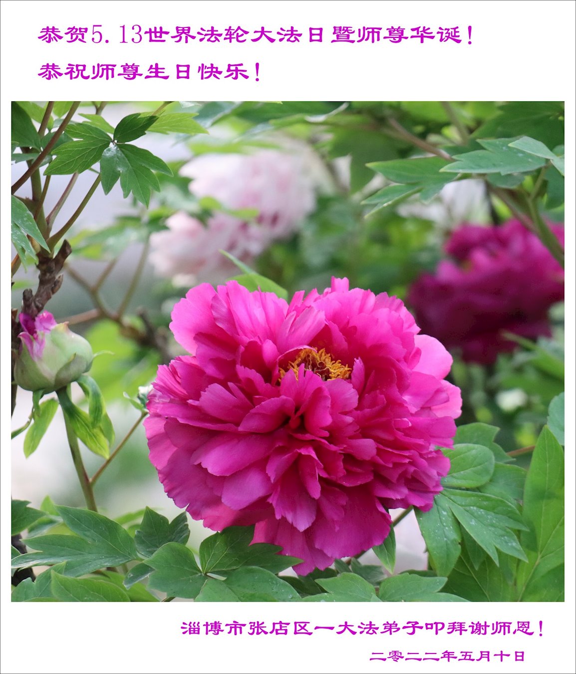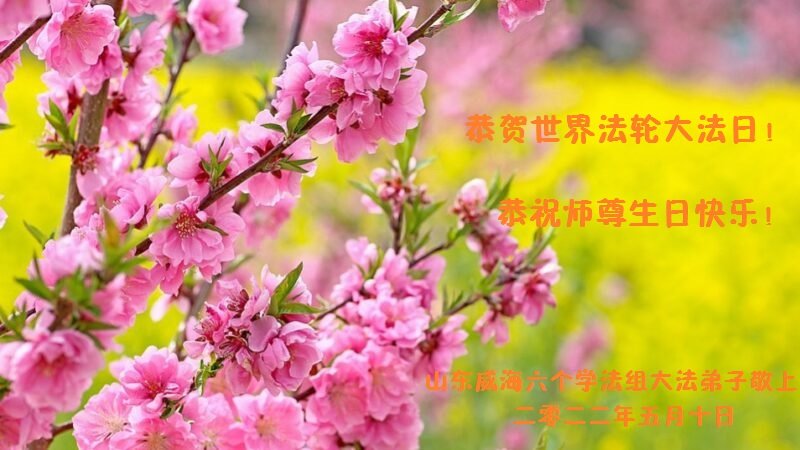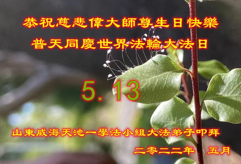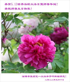 【明慧网二零二二年五月十二日】 山东省淄博市大法弟子恭贺世界法轮大法日暨师尊华诞!恭祝师尊生日快乐!