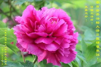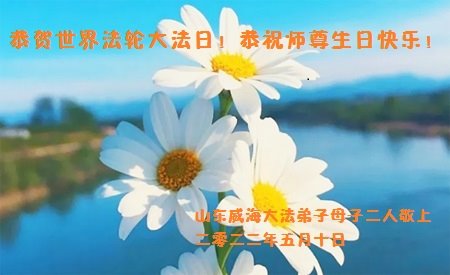 普天同庆世界法轮大法日!叩谢师尊慈悲救度。 山东省威海市母女大法弟子及家人敬上 山东大法弟子敬贺法轮大法日!恭祝师父七十一岁华诞!