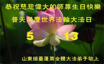 山东烟台招远一大法弟子恭贺世界法轮大法日!恭祝师父生日快乐!