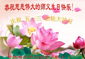 黑龙江省齐齐哈尔大法弟子恭祝师尊生日快乐!恭贺世界法轮大法日!