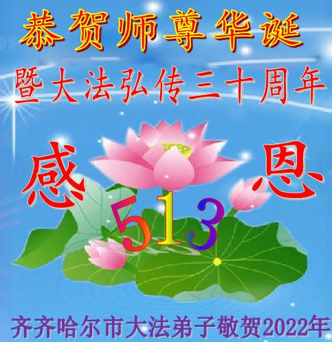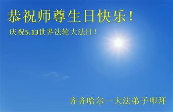 黑龙江齐齐哈尔一大法弟子恭祝师尊生日快乐!庆祝5.13世界法轮大法日!