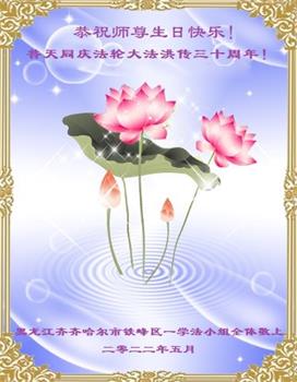 黑龙江省齐齐哈尔市昂昂溪区全体大法弟子恭祝师尊生日快乐!恭贺世界法轮大法日!
