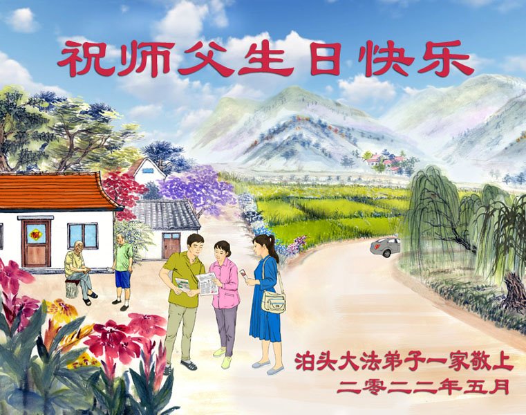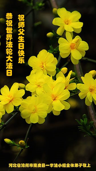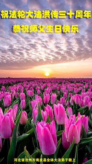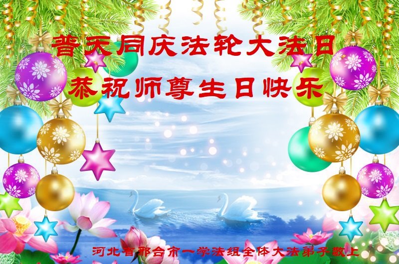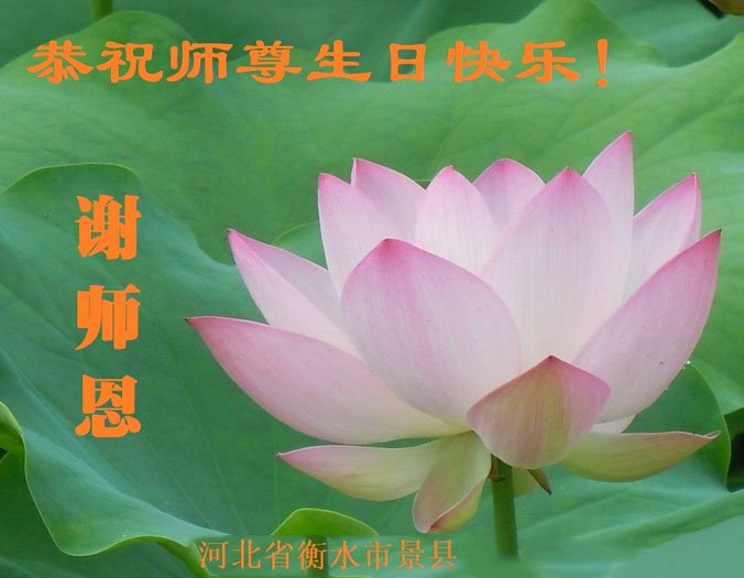 感恩师尊无量慈悲!弟子们一定不负师恩,做好三件事,助师正法,多多救人,请师父放心。 河北省邯郸地区曲周县大法弟子恭祝师尊生日快乐!恭贺世界法轮大法日!