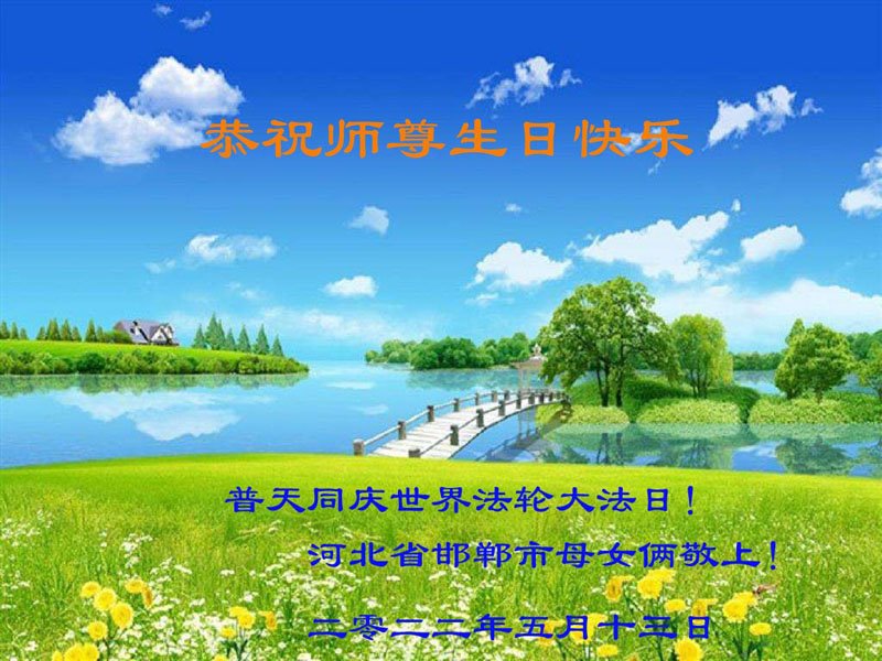 河北省邯郸市母女俩大法弟子恭祝师尊生日快乐!恭贺世界法轮大法日!